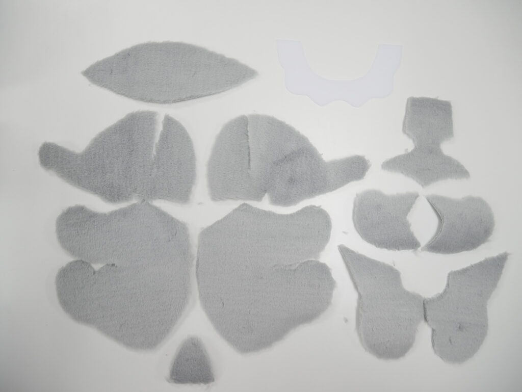 交換生地のご案内です! おからだ全体はファー生地(毛足6㎜)のシルバーグレー、