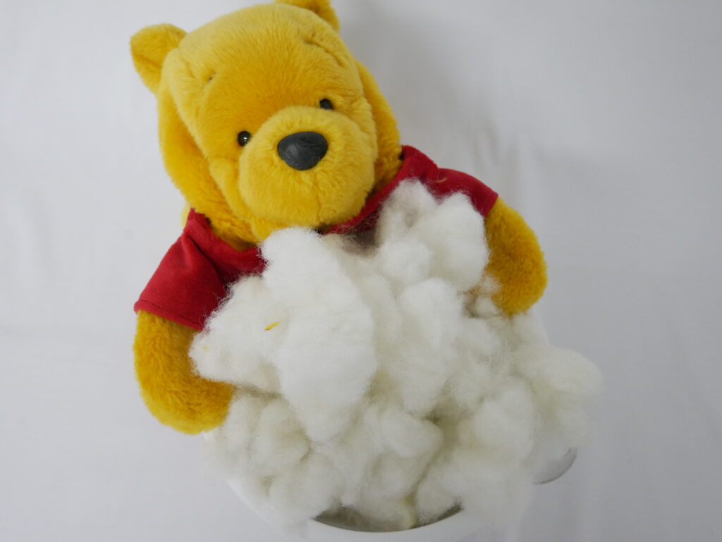 元々の綿を一部クリーニングしてピンクのハートのガーゼにお入れし、綿入れ時にお戻ししましょうね(*'ω'*)