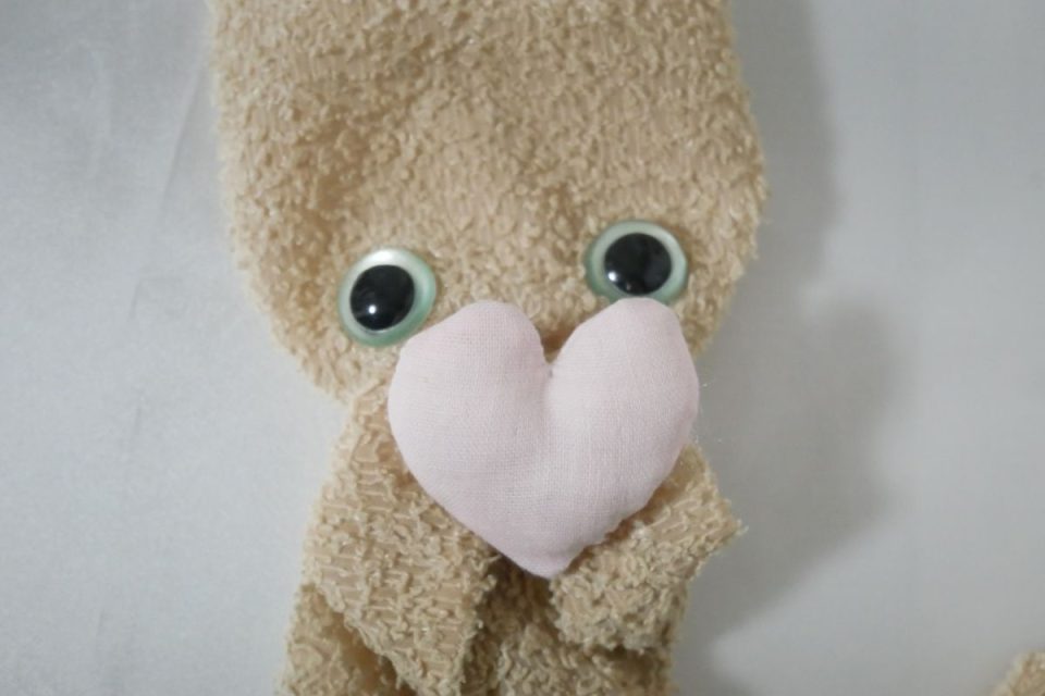 また、こころハートをご希望でしたので、元々の綿を一部クリーニングしてピンクのハートのガーゼにお入れし、綿入れ時にお戻ししましょうね(*'ω'*)