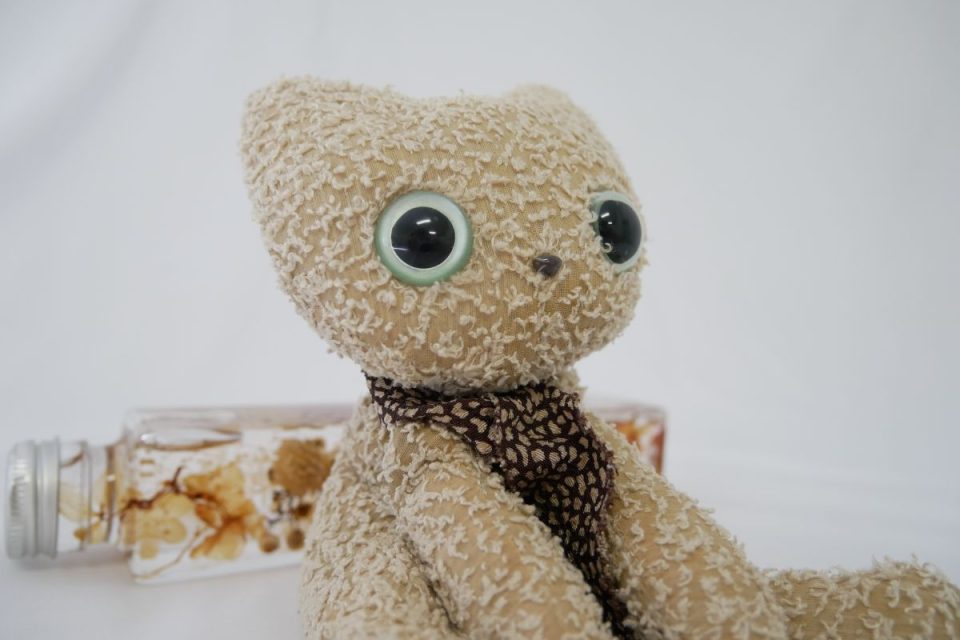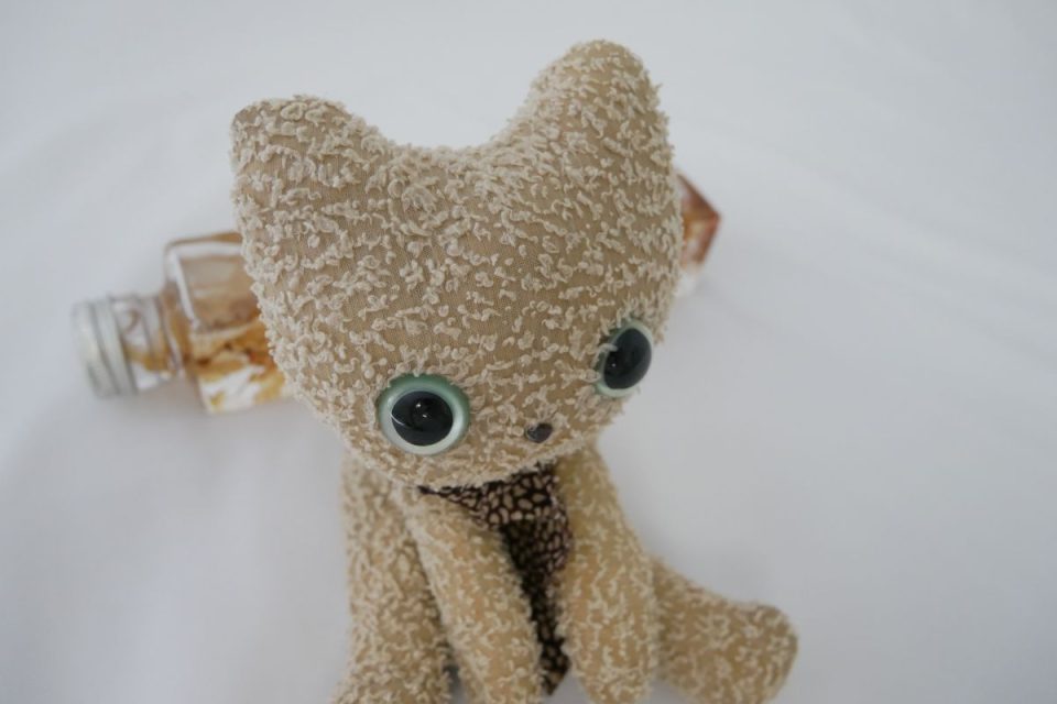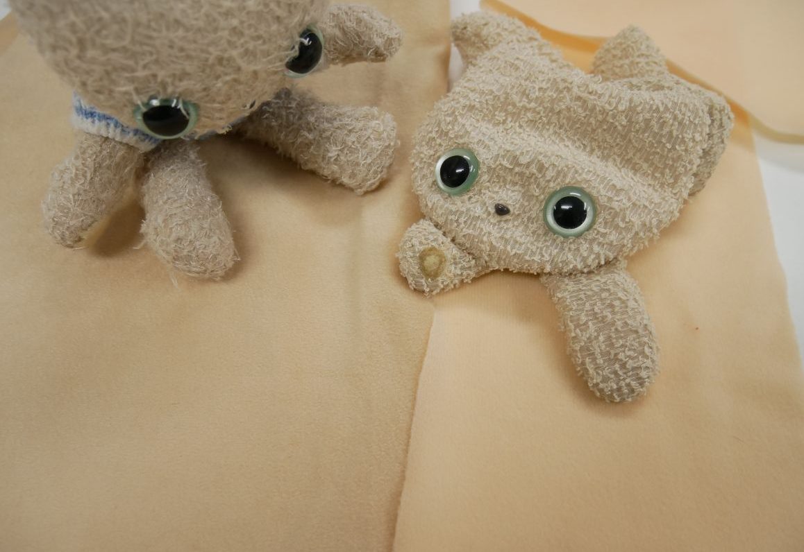 自分の中に入っていた綿やピーズを覗き込むたびぃが可愛らしかったです!