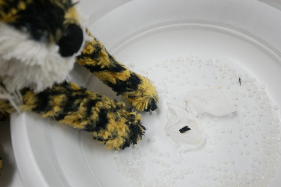 両足のビーズ袋は破れてビーズが漏れていましたので2つ分新しく作り直しましょう!