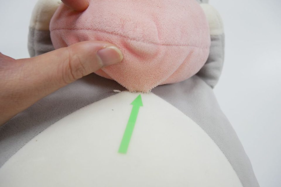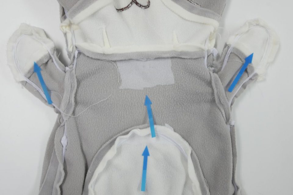 シッポは縫いどまりでしたので、一部縫い線をほどいて綿をお入れし縫い閉じる、縫いどまり綿交換をしていきましょう!