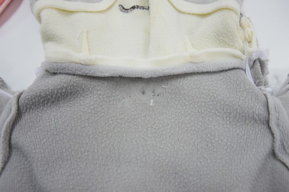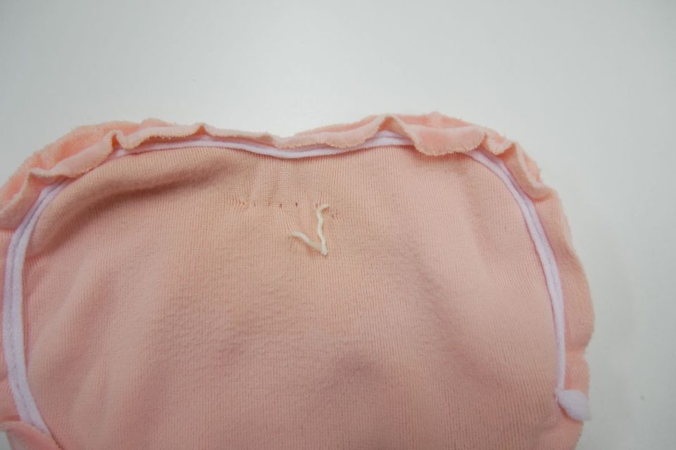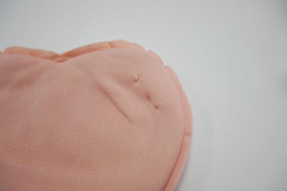 ハートのとめ付け位置や綿口など、力がかかり生地に負担がかかりやすい箇所の穴が想像以上に広がりはじめていました。