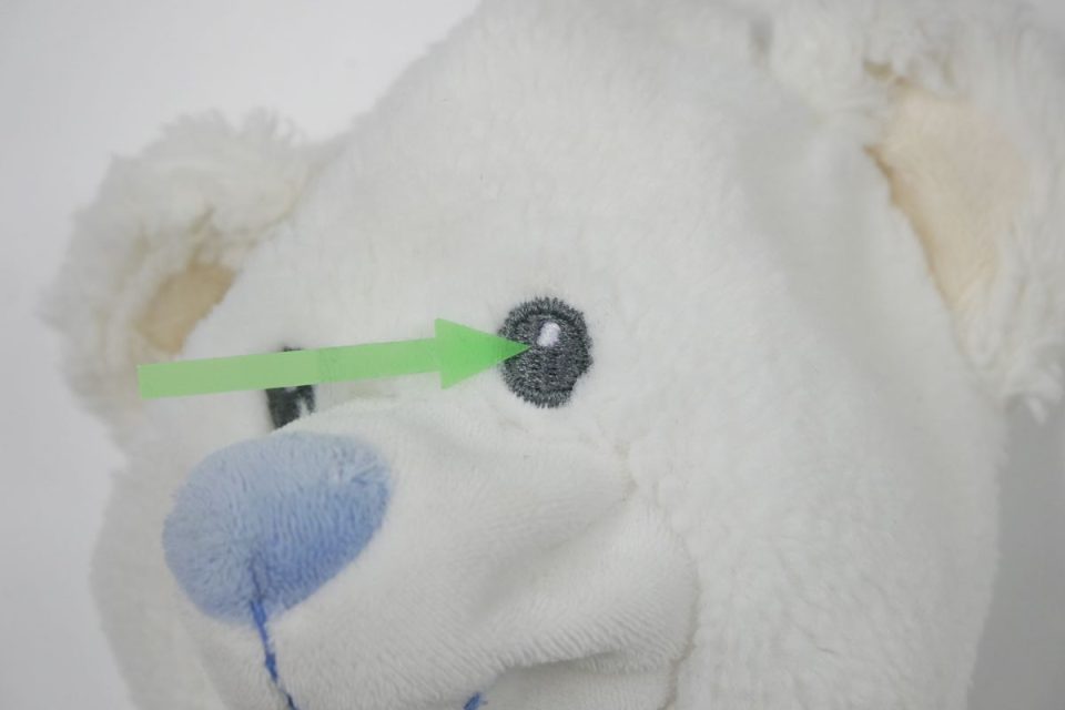 左白目の機械刺しゅうがほつれてしまっているので補修しましょう♪