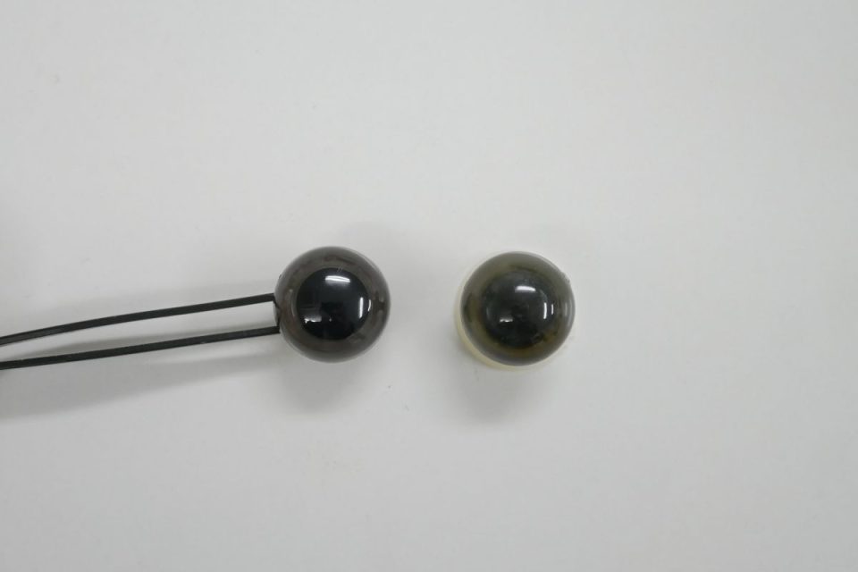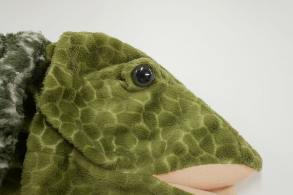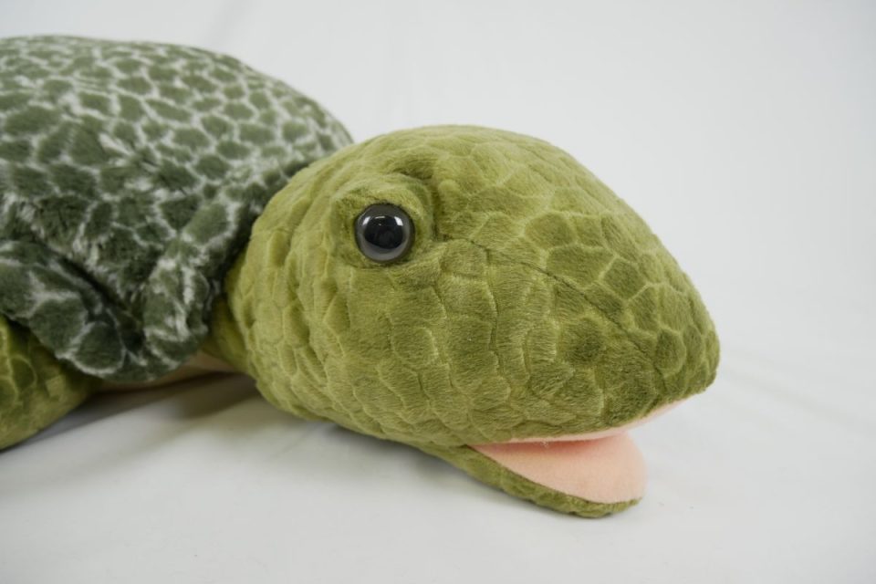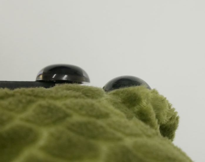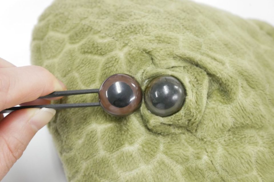 オオガメさんのオメメは一般的に販売されているものに比べ、横から見たときの高さが高く、黒目の大きさが大きい特別なパーツが使用されています。