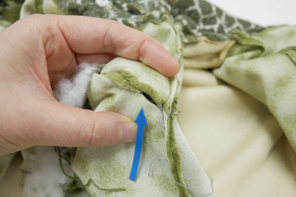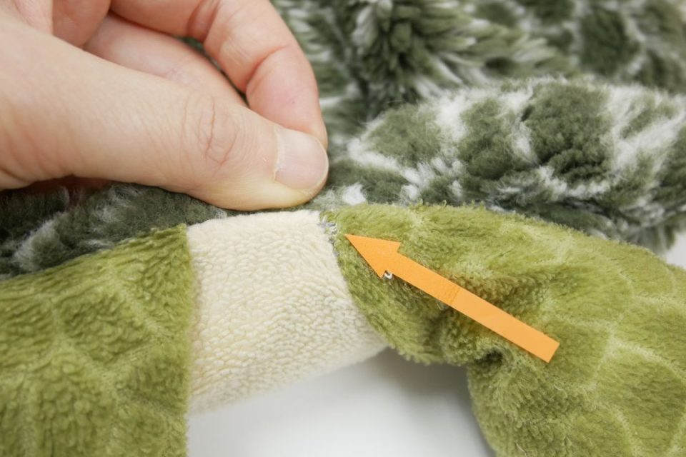 シッポはは縫いどまりでしたので、一部縫い線をほどいて綿をお入れし縫い閉じる、縫いどまり綿交換をしていきます!