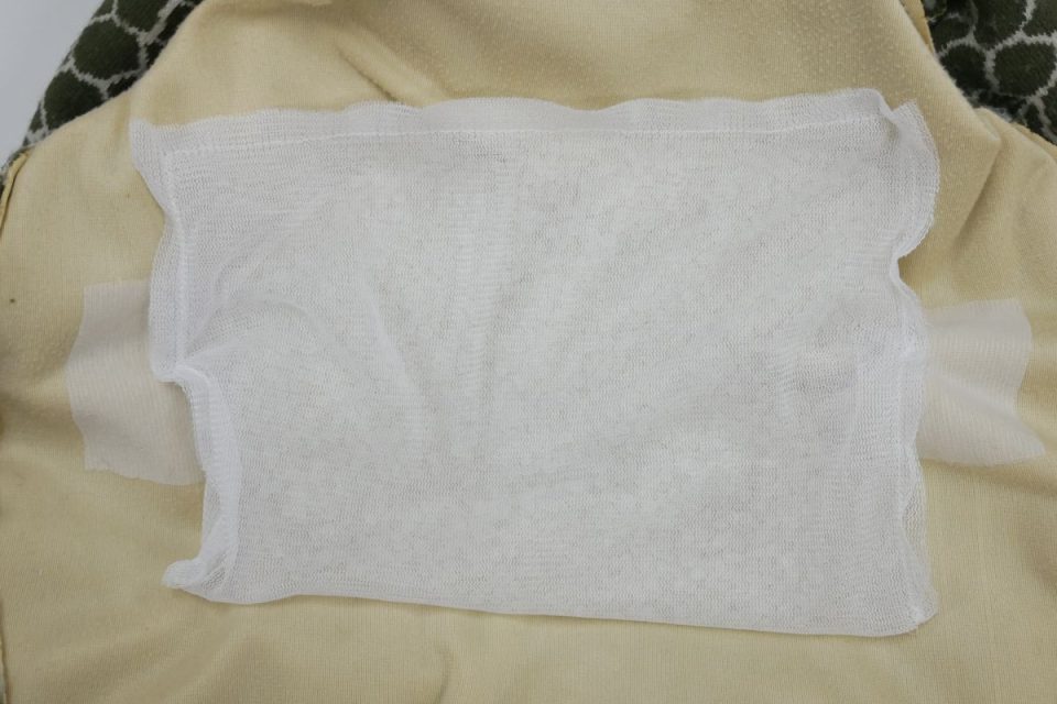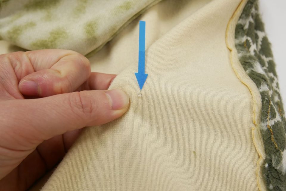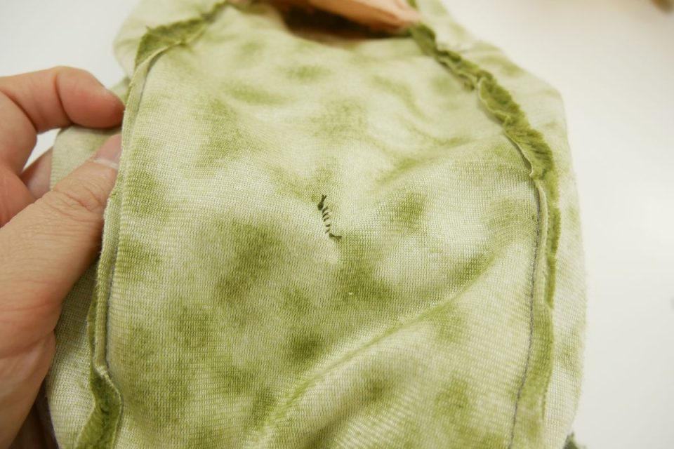 接着芯補強とは裏側から薄い芯をお貼りし、生地を補強する治療になります。