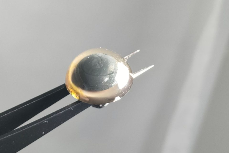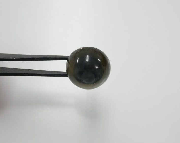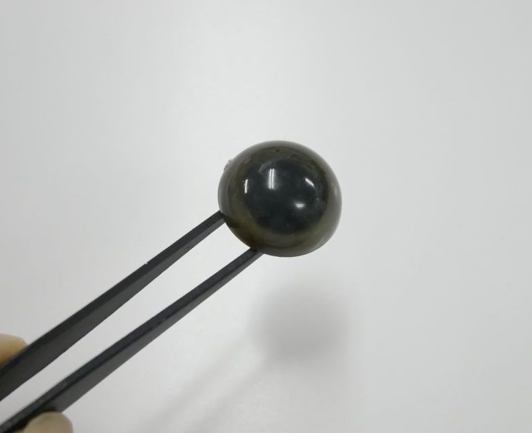 ベースは濃いグリーンのようなお色で、フチや黒目まわりにぼんやりと焦げ茶色がにじんでいるような色味でした。