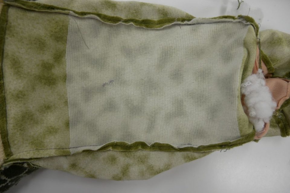 オナカに入っていましたビーズ袋は生地が薄くなり切れそうですので、あたらしく作り直しましょう(^^)」