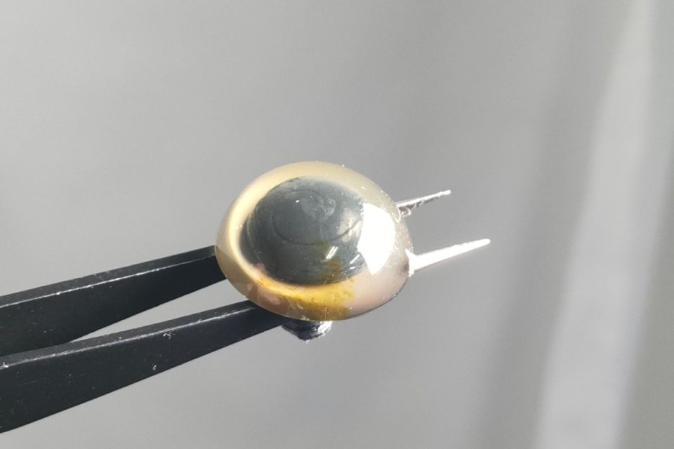 右目の治療は、お見積り時にご相談させていただきました通り、大きさの近い透明のパーツをベースに左目のお色を参考にペイントしていきます(◎v◎)