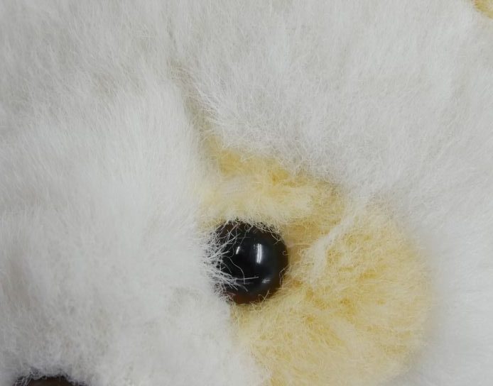 オメメのガーゼを当てた部分は、毛流れに沿って自然にしている分にはガーゼはほとんど見えませんが、毛をかき分けると見える状態です。