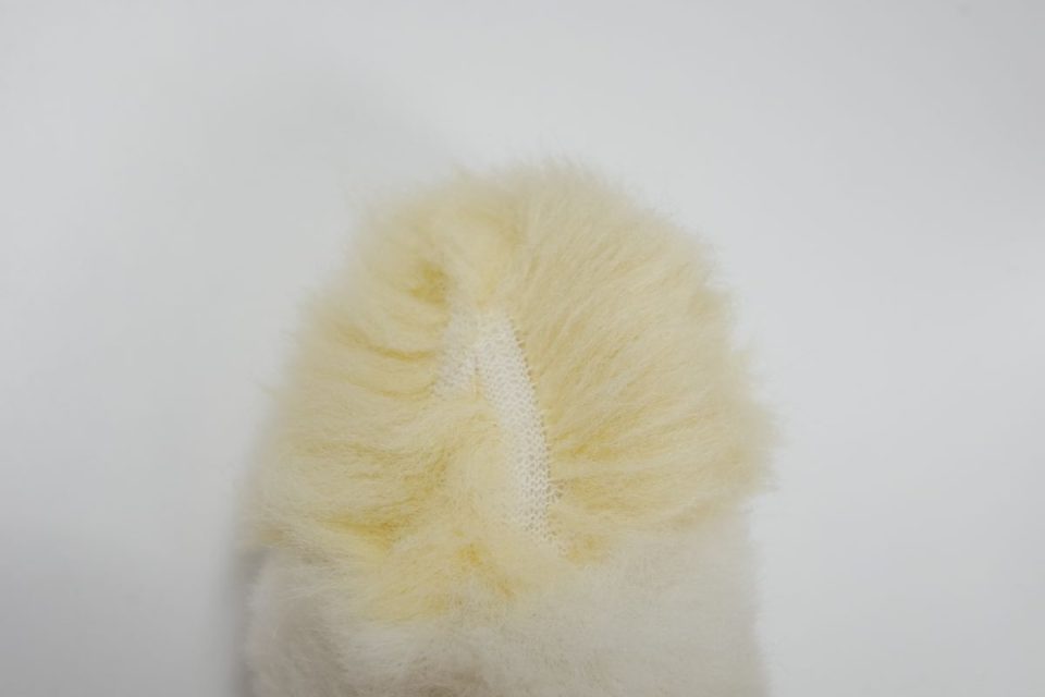 植毛治療には土台の補強治療が必須となりますので、植毛の希望のシッポを含め、生地が弱くなってきているオメメ周り・手足先などの黄色い生地の部分は、オケガの治療後に裏側から薄い芯をお貼りし生地の補強を行う接着芯補強治療をお見積りにいれさせていただきました。