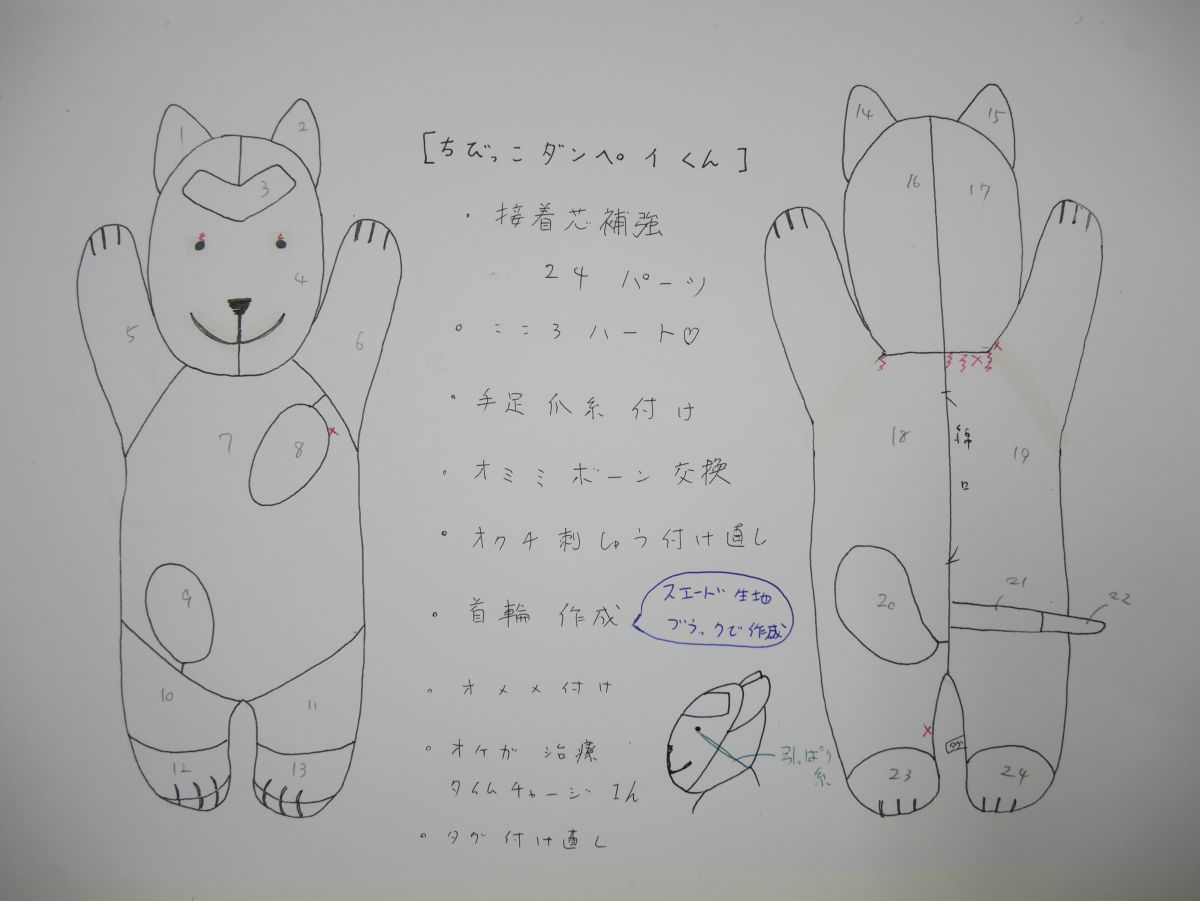 ダン兄さん、チビダンくんも綿入れ、オクチの刺繍、こころハート作成まで完了です♪