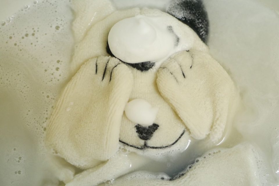 元々の綿を一部クリーニングしてピンクのハートのガーゼにお入れし、綿入れ時にお戻ししましょう(*'ω'*)