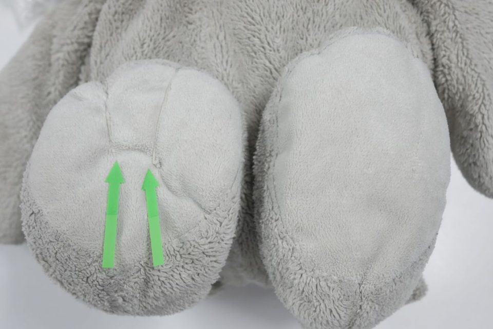 オシリにビーズ袋がございましたので新綿交換時に同じ位置にお戻しいたしますね。