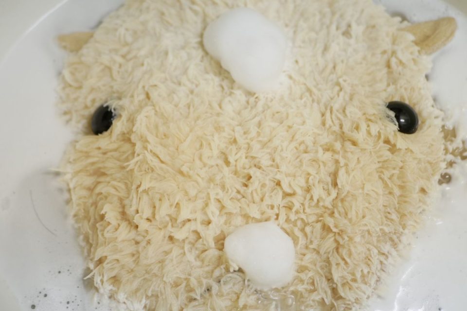 手足とオナカにビーズ袋が入っていましたので、クリーニングして綿入れ時にお戻しいたします(*^-^*)