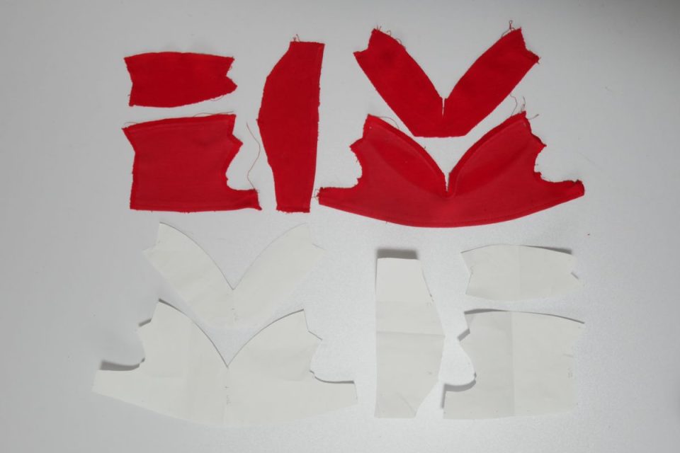 プーさんのお洋服をほどき、型紙を作成し、新しい生地を裁断しました♪