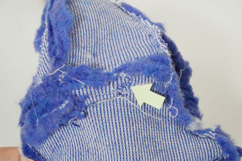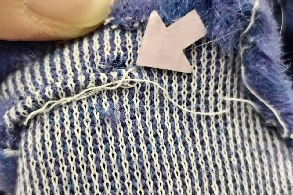 縫い代が少なく縫い線が外れている部分は少し縫い込みますね。