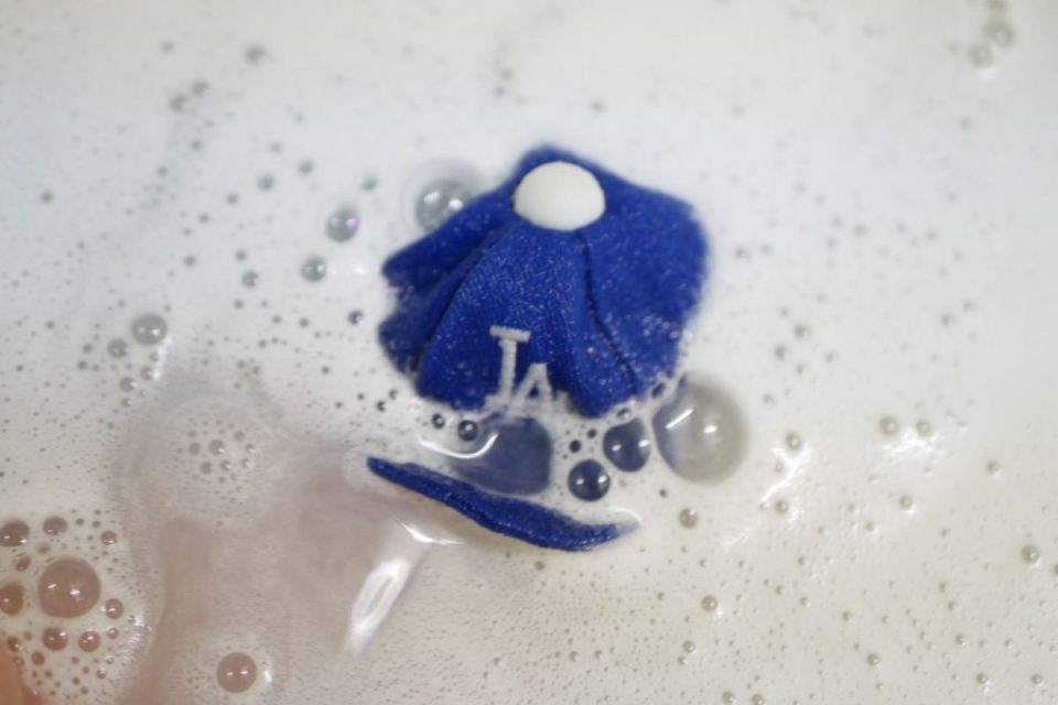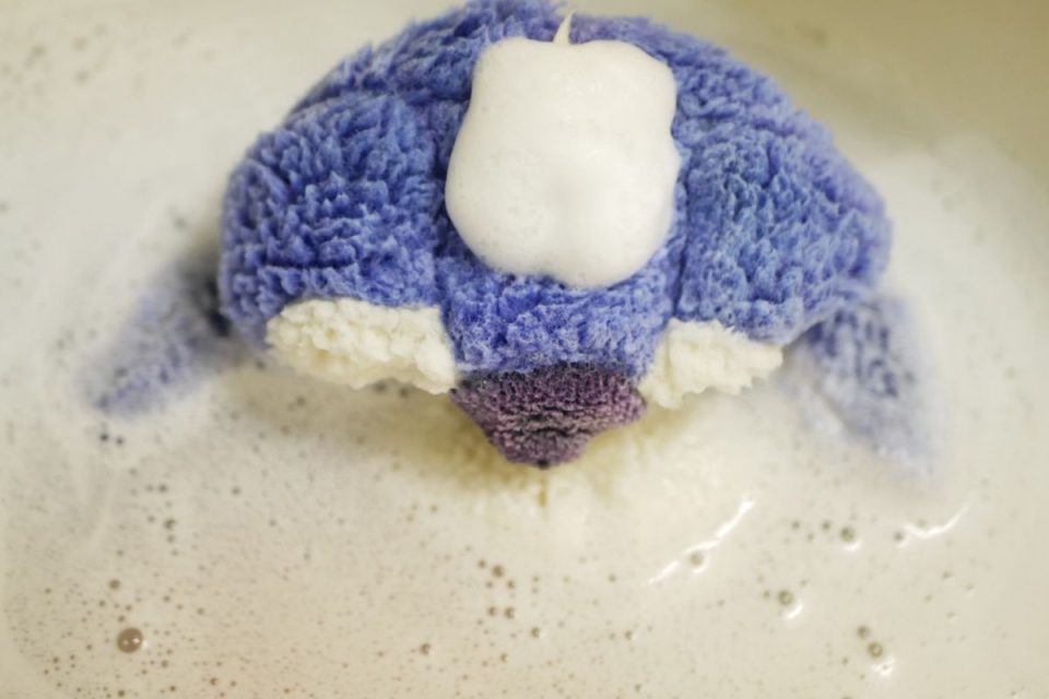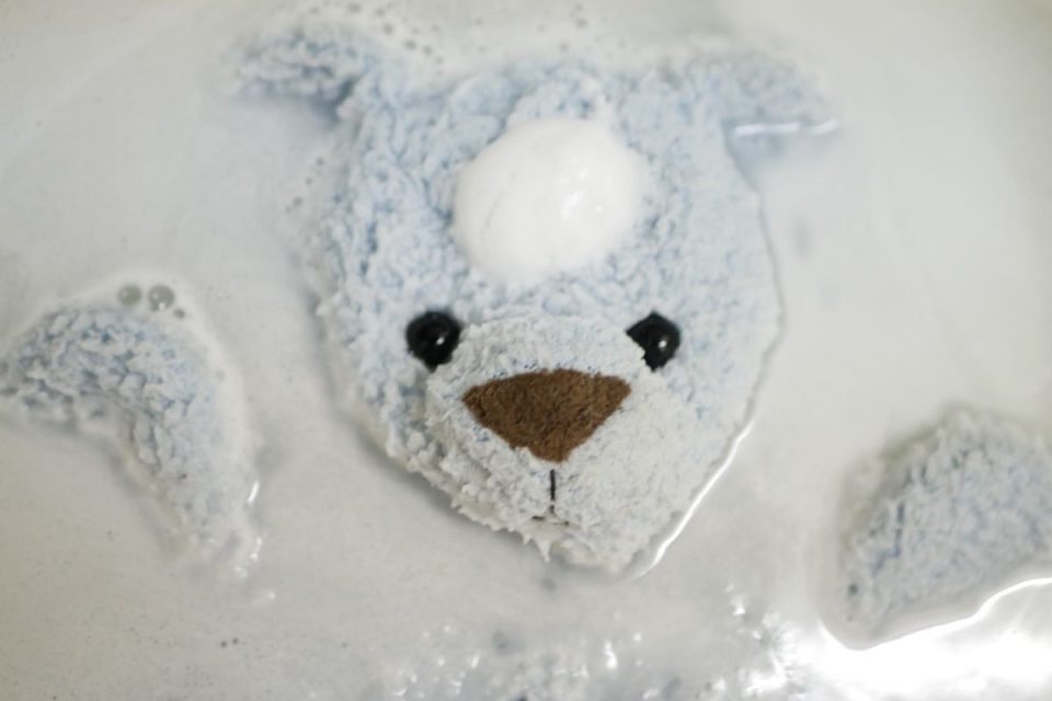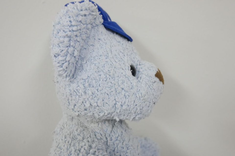 【あおいクマさん】基本料金内のピーリング治療で毛玉を除去、お帽子の留め付けがを行いました♪