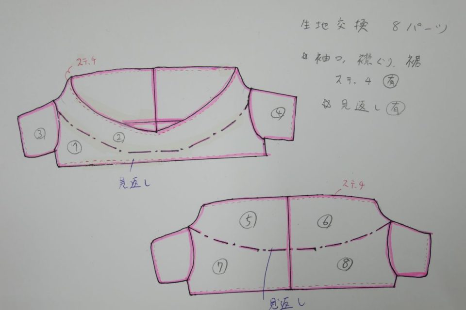 生地交換の場合、元々の生地は一緒にお返しさせていただきますが、型紙作成の為ほどいた状態でのお返しとなりますことご了承ください。