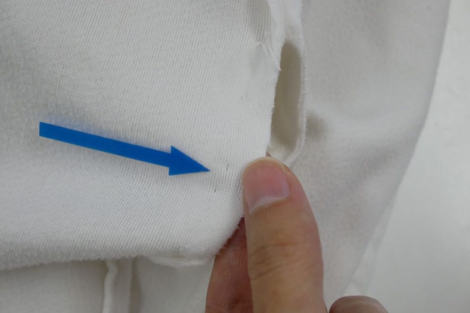 力がかかりやすい綿口や、生地の状態に応じて必要な箇所には部分的に接着芯で伸び止めの補強をおこなわせていただきたいと考えています。