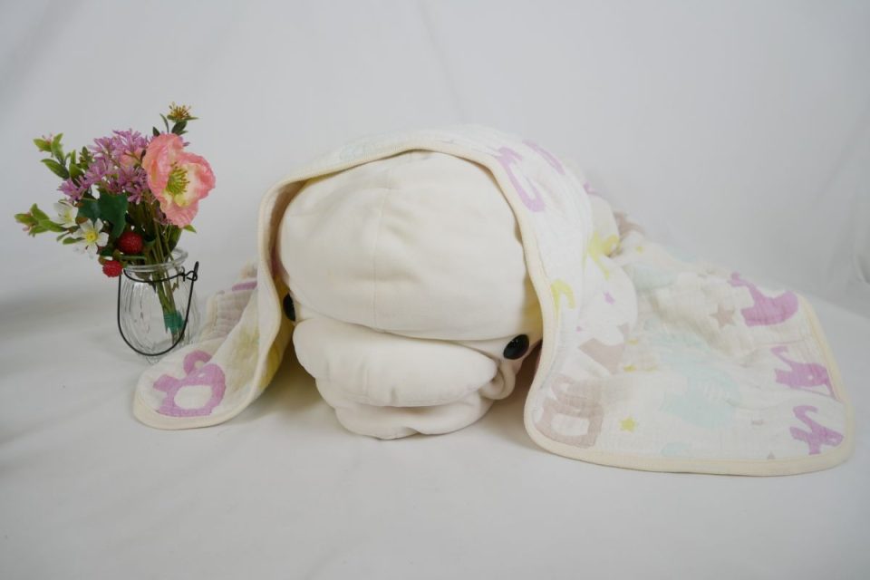 マシュマロ手芸綿は特殊な綿の為、ご入院費用とは別でマシュマロ手芸綿代が発生いたしますが、体積の調整がしやすく、生地に負担をかけにくいため、一般的な中綿のボリュームの影響による伸びやサイズアップを防げますのでおすすめです(^^)