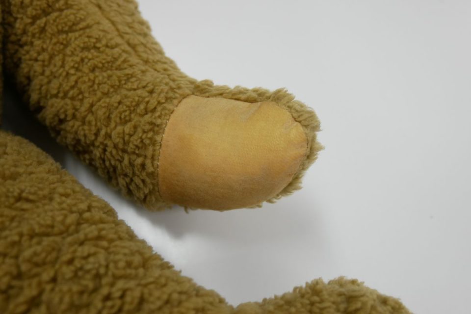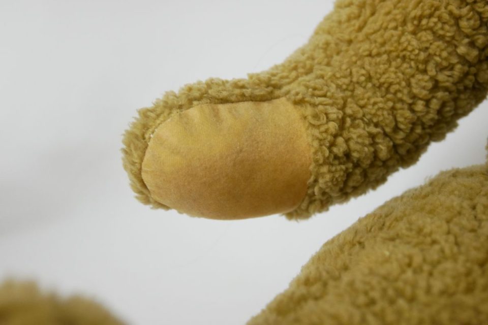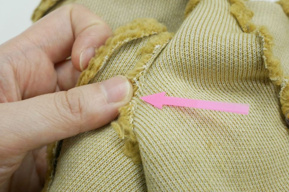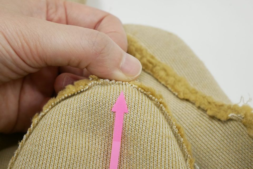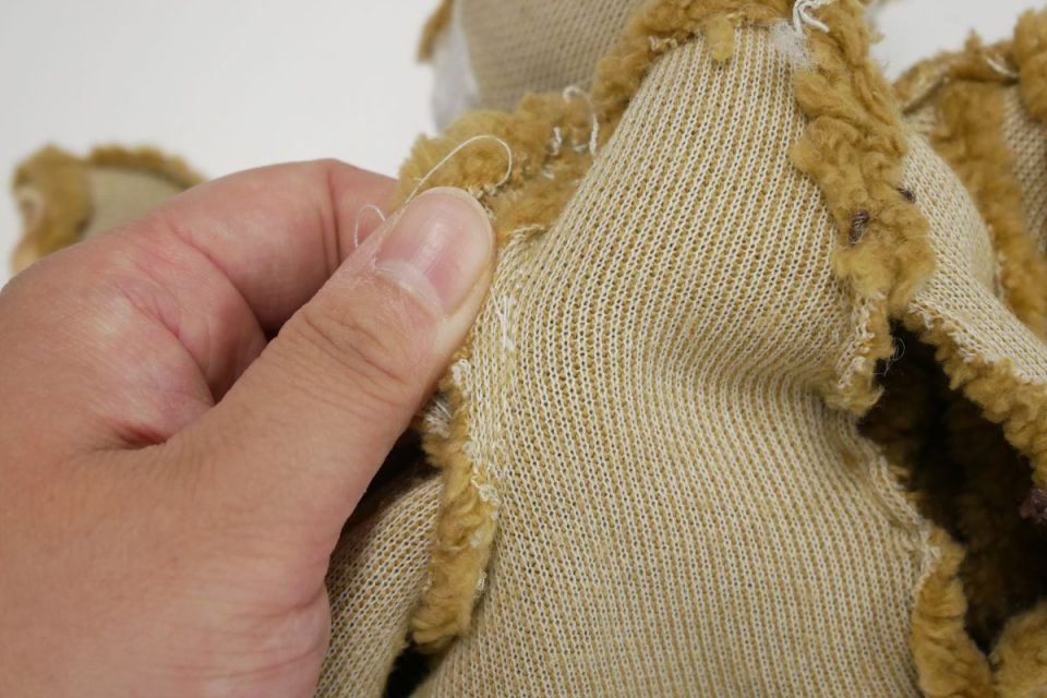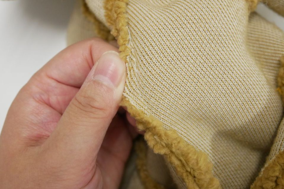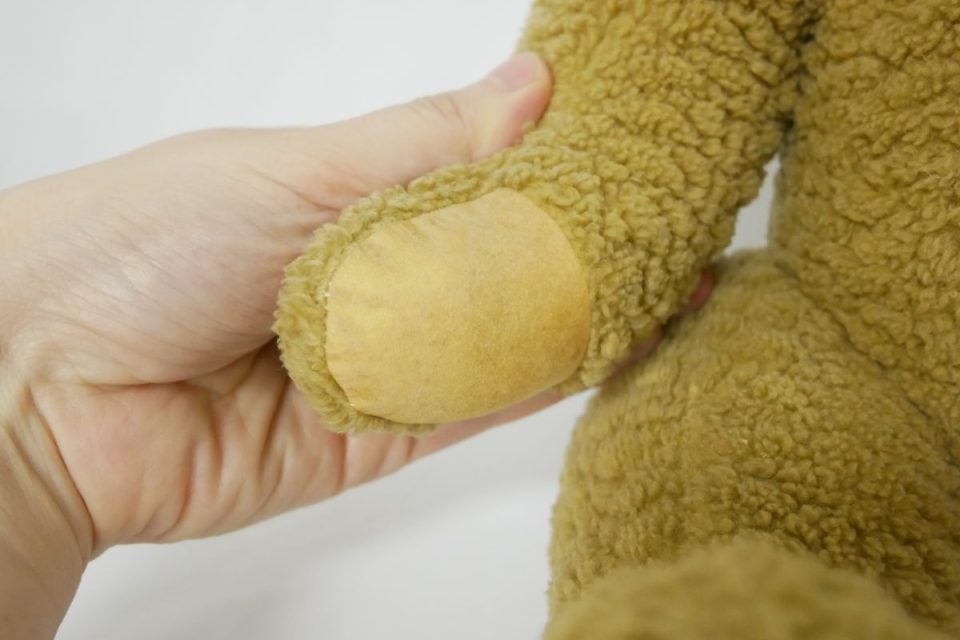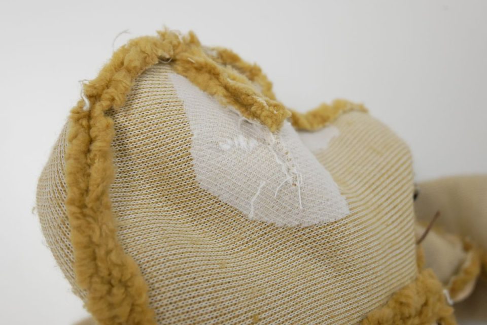 オミミの付け位置周辺・オメメ周りはチカラがかかりやすく、オケガも大きいためオケガ治療後に薄い芯をお貼りして生地の補強も行いましょう!