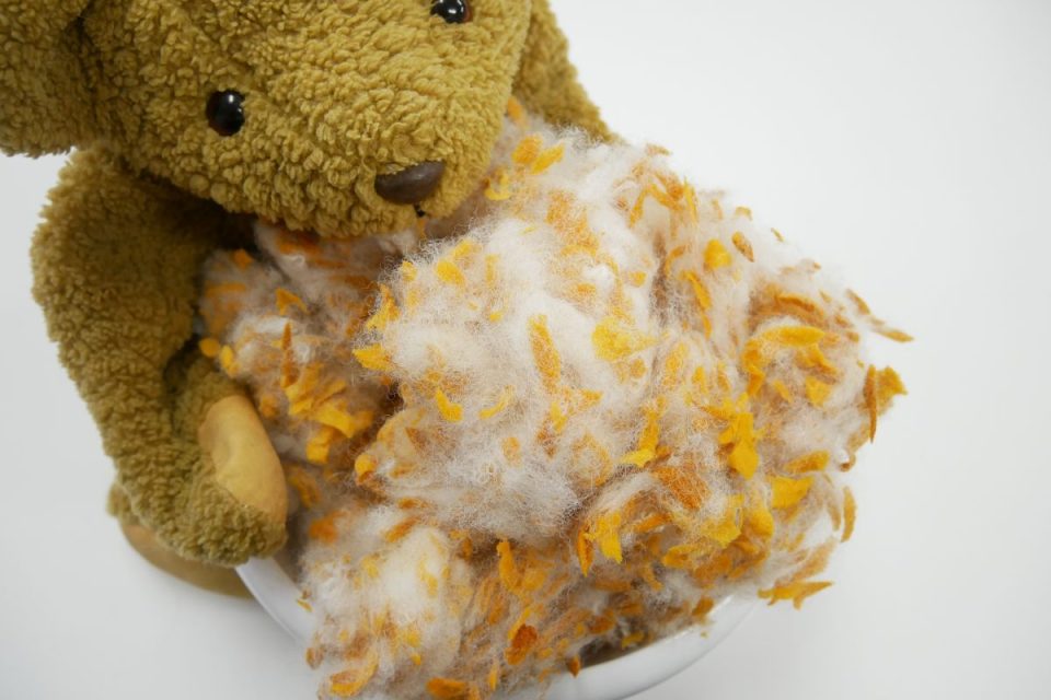ウレタン綿はお体の生地を傷める原因となりますのですべて白いポリエステル綿に交換しましょうね。