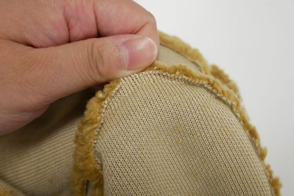 足裏の素材は表面に起毛のある生地ですが加工が少し剥げてきています。
