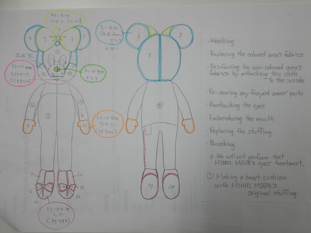 We will re-sew MINNIE MOUSE's frayed and weakened parts.