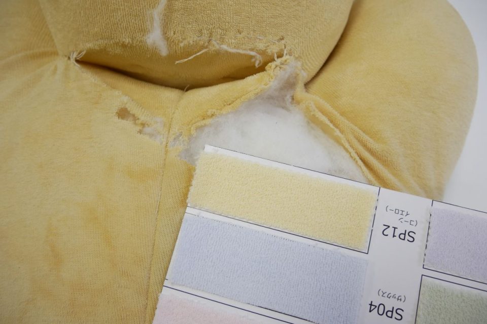 問診票に「修復の後は目立ってもかまわないので、できる限りの延命をしたいと思っています」とご記入ただ来ましたので、生地交換ではなく今の生地を活かしての治療でお見積りさせていただきました。