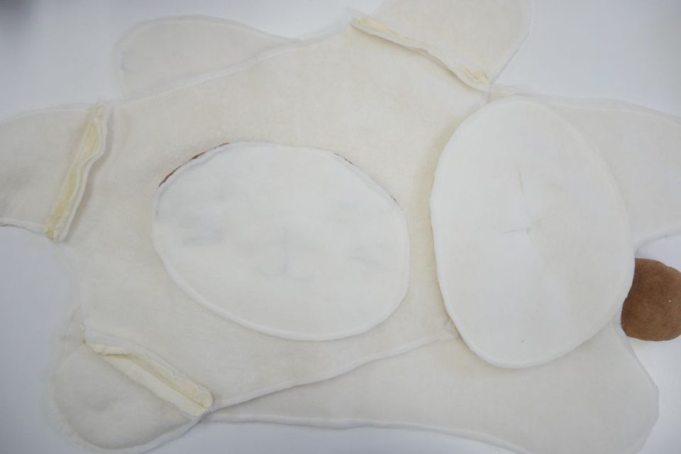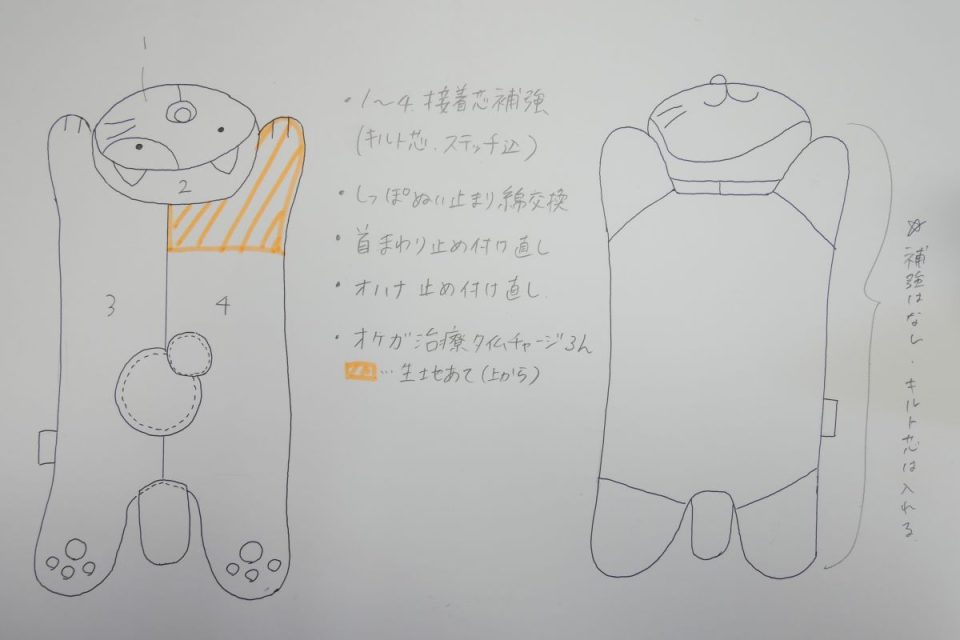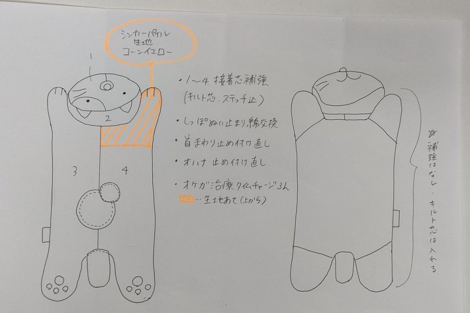 お腹とお腹側の手先については背着芯補強は無しでも大丈夫そうでしたので、キルト芯の付け直しのみおこないますね(^^)