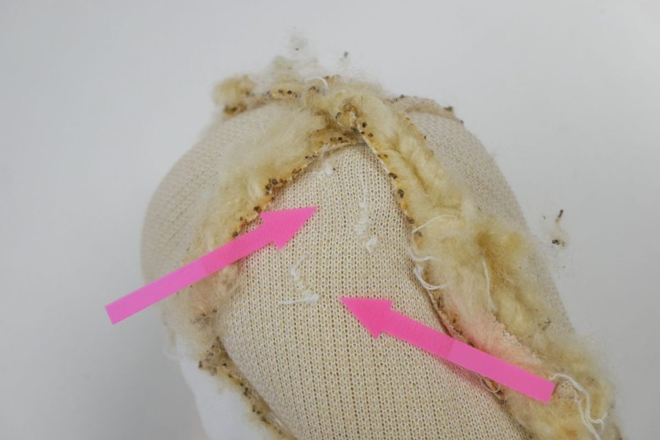 We will clean part of sai b' original stuffing and make a pink heart cushion♡
