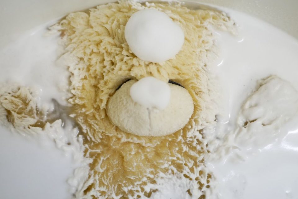 If washed as is, the synthetic leather may peel off, so their nose will be removed before washing.