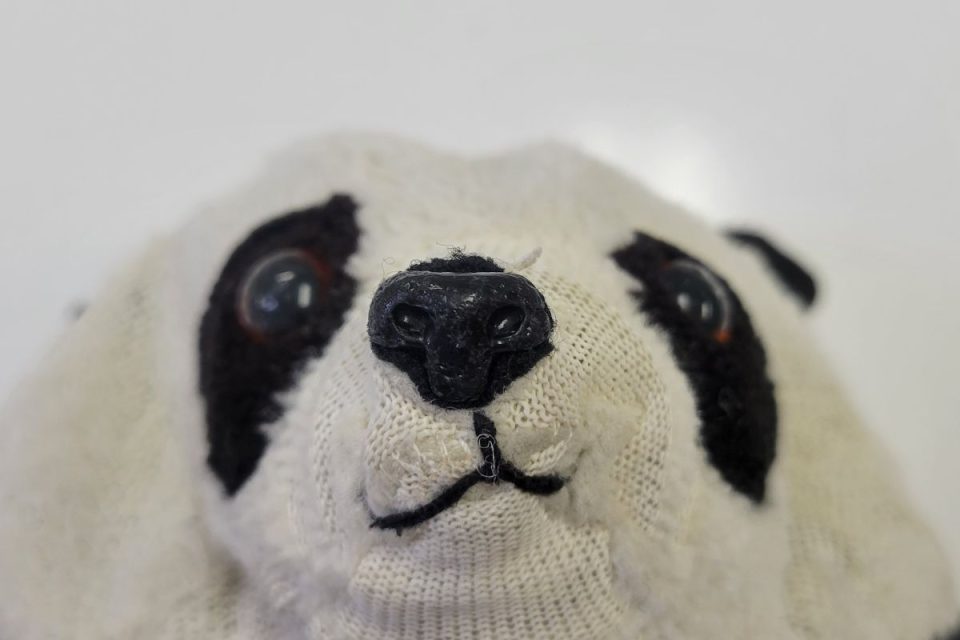 パンダさんの腕の角度ですが、横に広げたようになってるのが少し気になります。