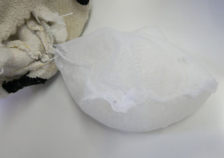 元々の綿を一部クリーニングしてピンクのハートのガーゼにお入れし、綿入れ時にお戻しします(*'ω'*)