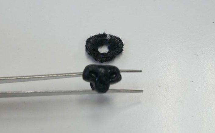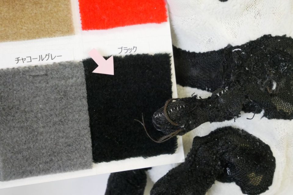 目まわり以外の黒い部分は、 お見積り時にご案内した ファー生地(毛足3㎜)のブラック