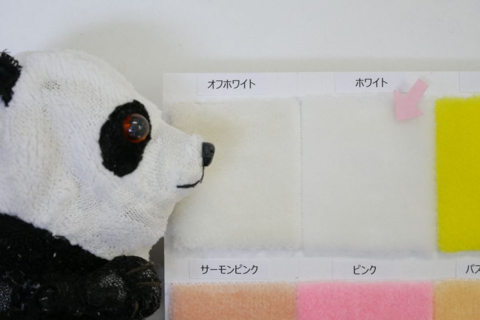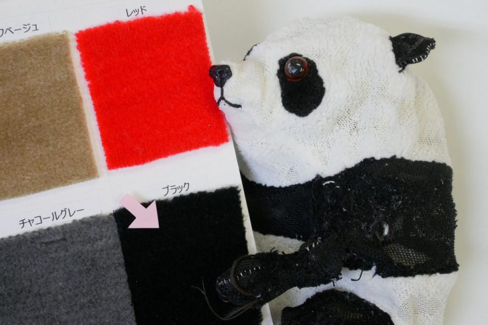 パンダさんのお体に近い生地は、ファー生地(毛足3㎜)のブラックになります。