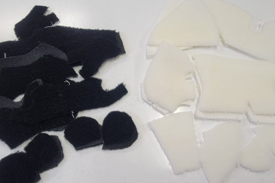 ①黒い部分は生地交換(オメメ周りは接着芯補強)+白い部分は接着芯補強で今の生地を活かす(※ただしオハゲ部分はそのまま)
