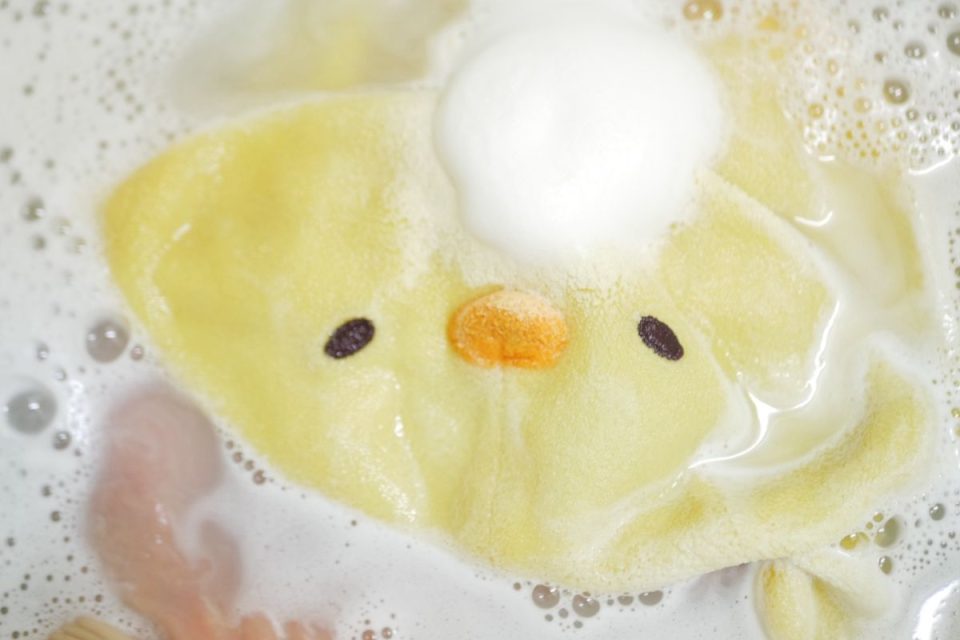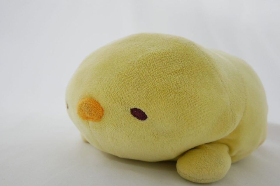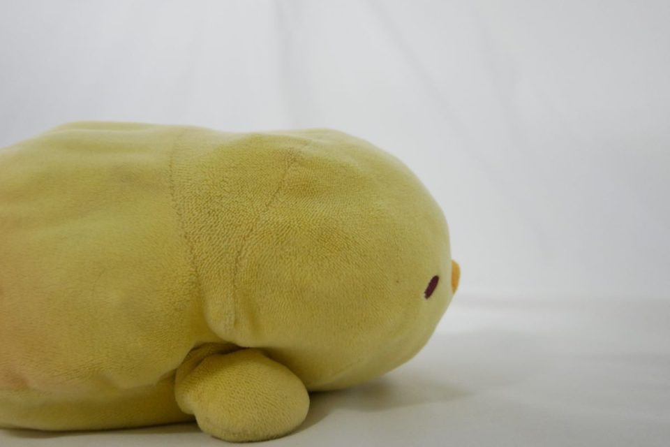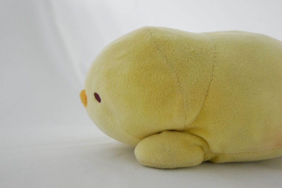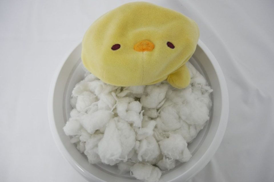 ピヨくんは【①もちもちタイプのマシュマロ手芸綿を使用し、オケガ治療と部分的な伸び止めを行う方法】