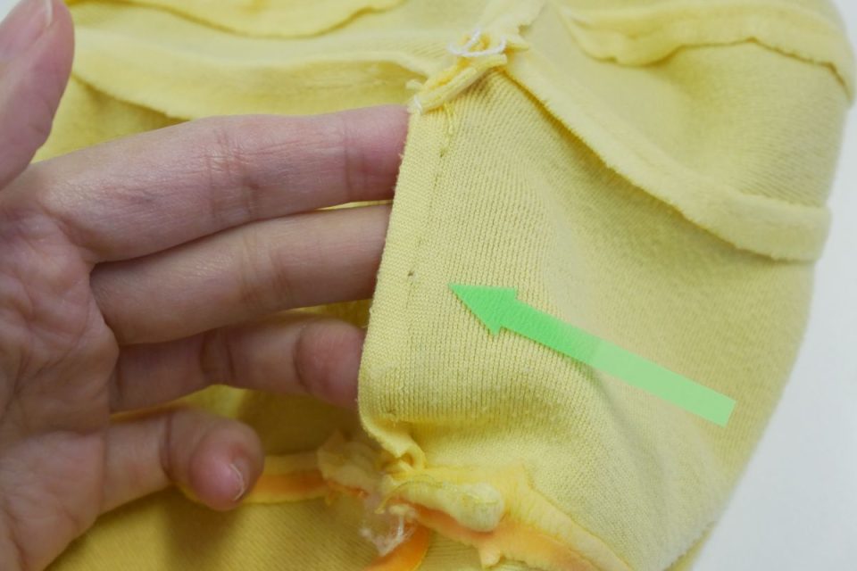 ①もちもちタイプのマシュマロ手芸綿を使用し、オケガ治療と部分的な伸び止めを行う方法