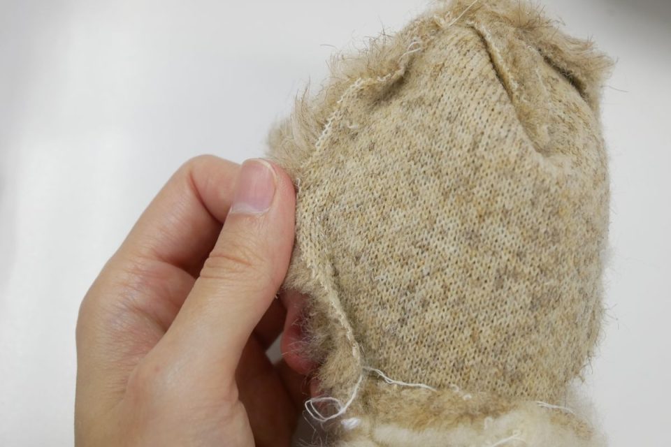 くまおさんは同年代のぬいぐるみさんに比べ、お体の生地の健康状態が良さそうですので補強治療などは特に必要ないかと思われます(*^-^*)