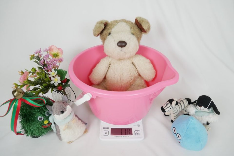 くまおくんは生まれつき綿が少なめでしたので、約10gほどお足ししました。