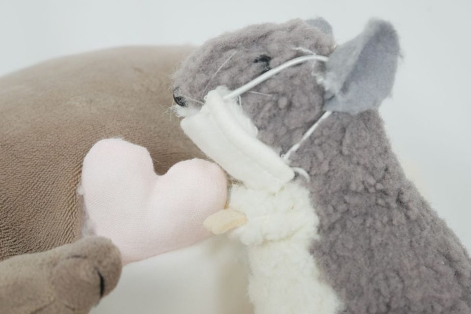 シッポは縫いどまりでしたので一部縫い線をほどき綿を入れて縫い閉じる、縫いどまり綿交換をしていきましょう!