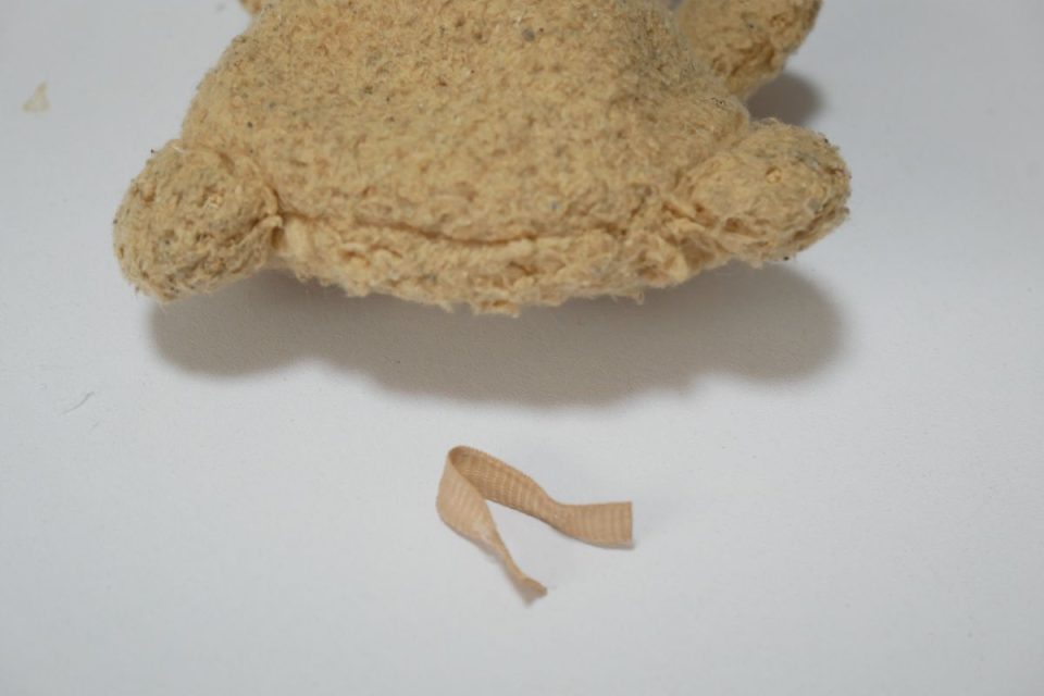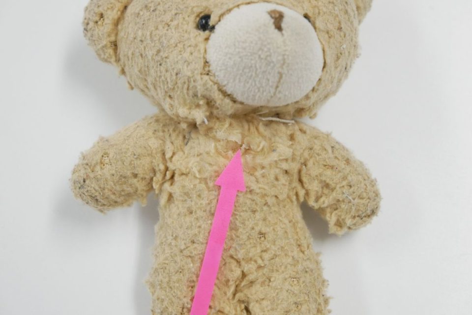 元々の綿を一部クリーニングしてピンクのハートのガーゼにお入れし、綿入れ時にお戻ししましょうね(*'ω'*)