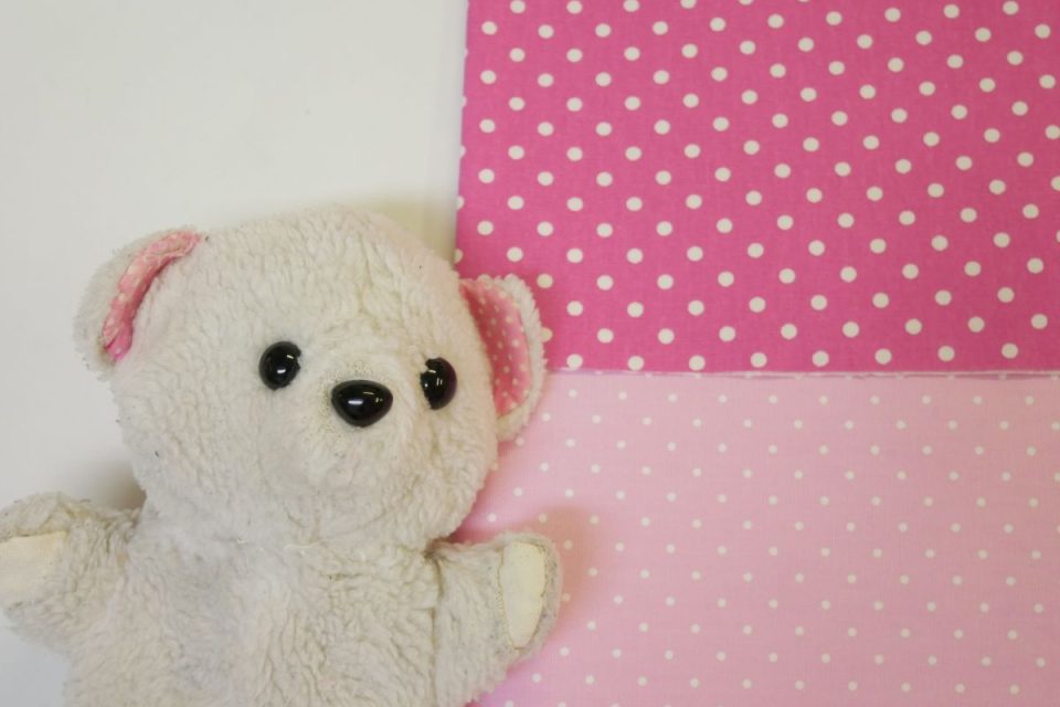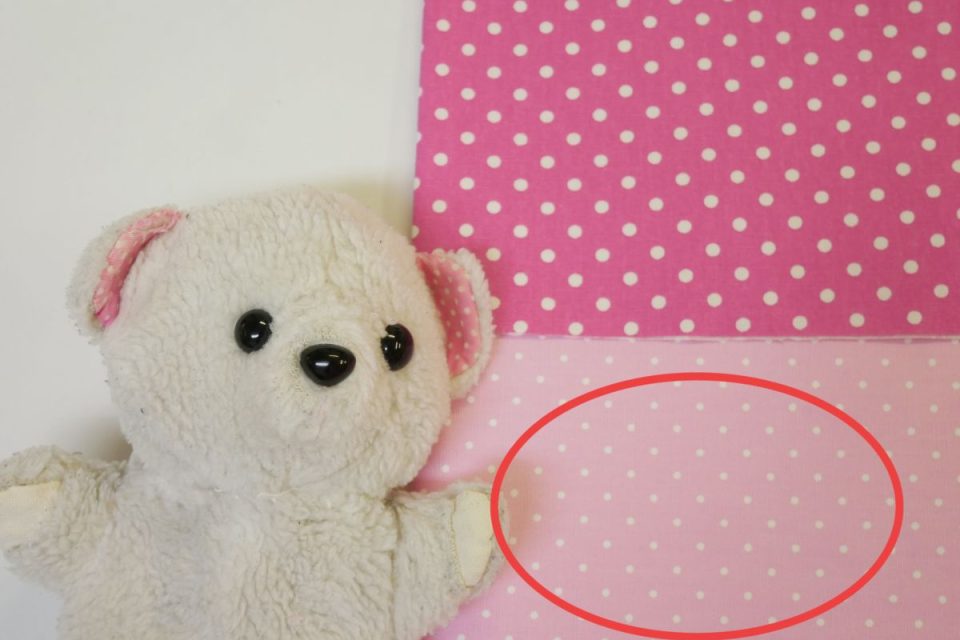 ホワイティ-くんの内耳・手足先は、オックス生地のピンク(以下、画像赤枠の生地)で進めてまいりますね♪
