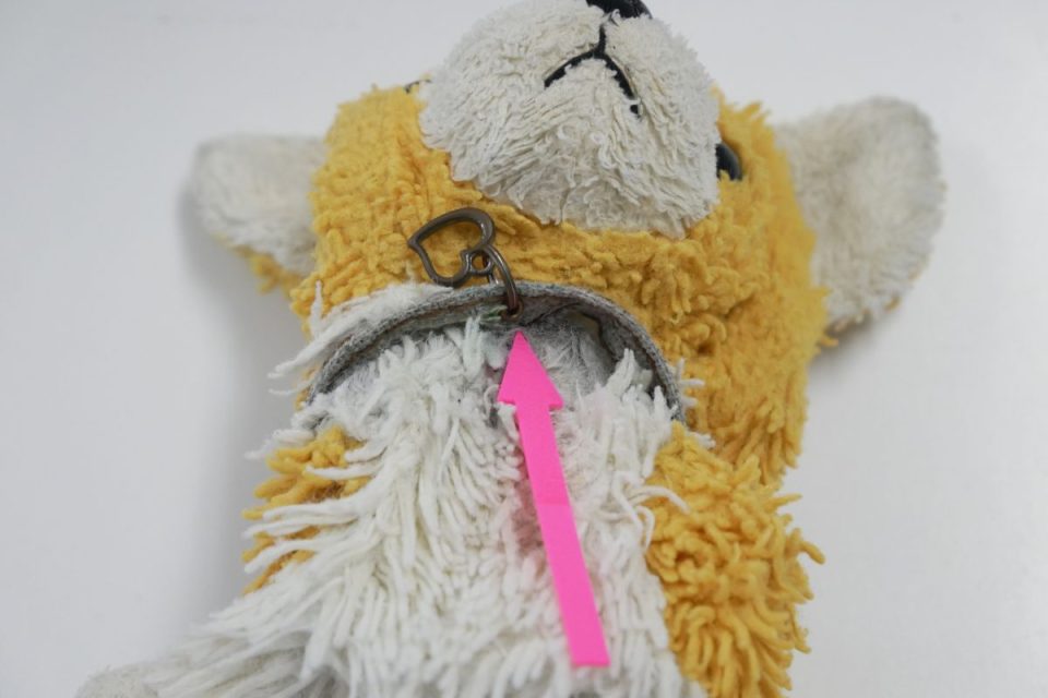 オシリにビーズ袋が入っていましたので、新綿交換時にお戻しします♪