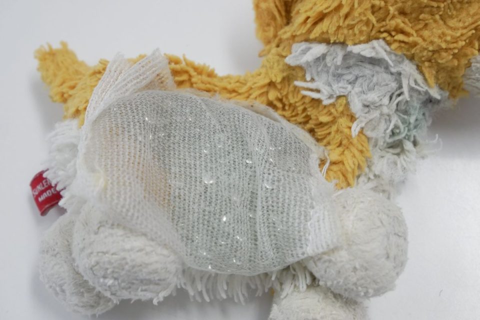 ヨチュくんは、ただいまオクチの糸をお外しして染み抜き治療に入りました。