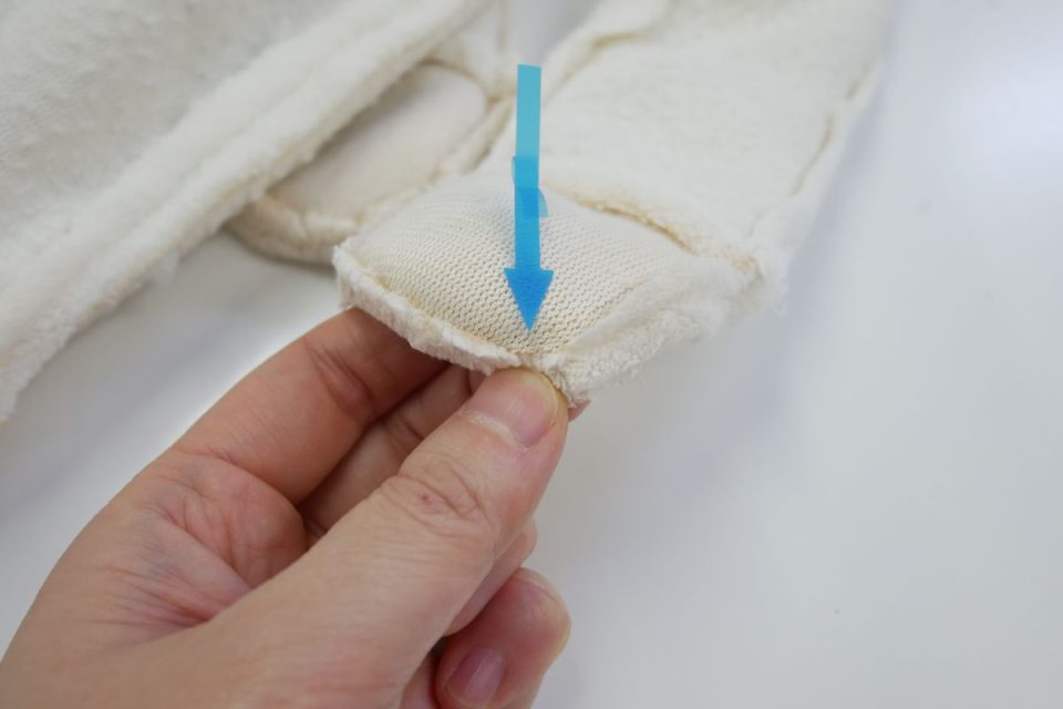オシリのビーズ袋は位置がずれないように1点固定しますね!