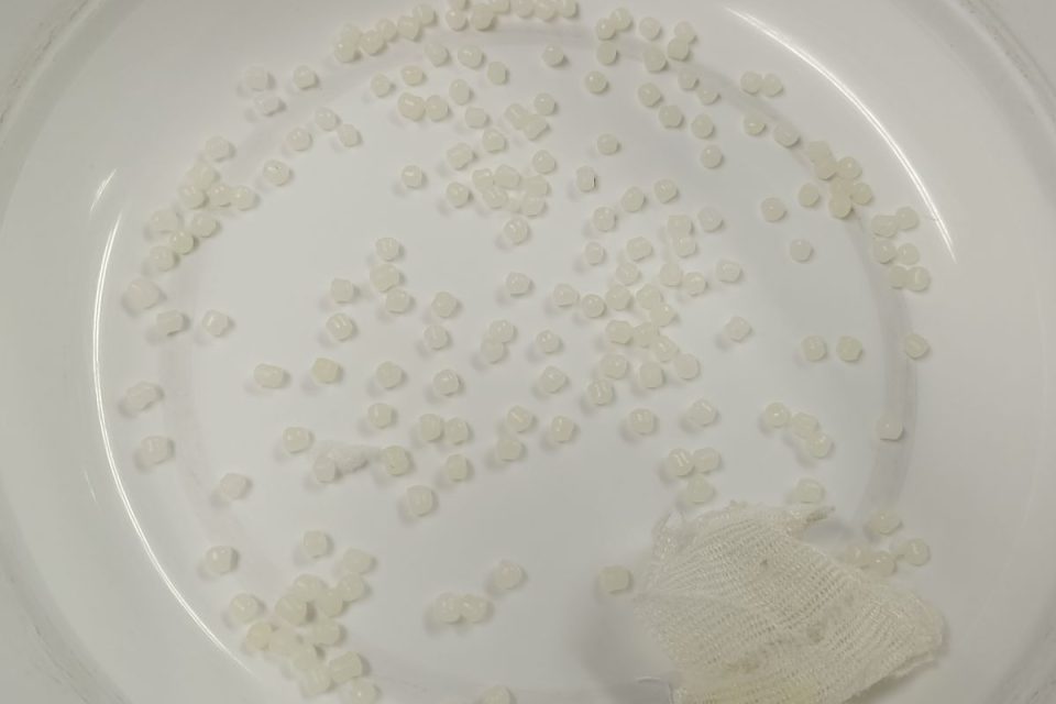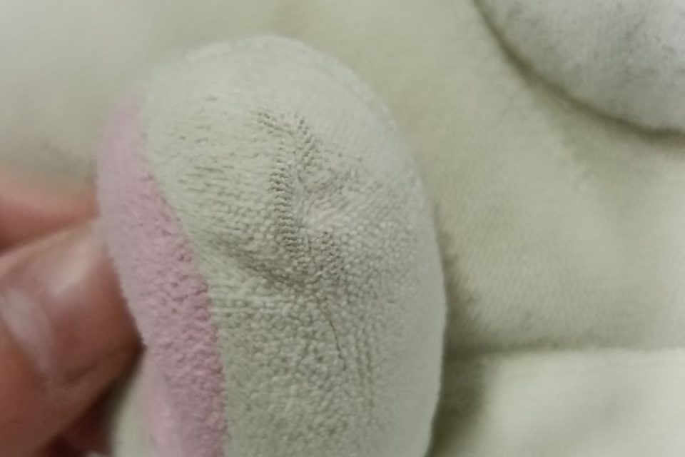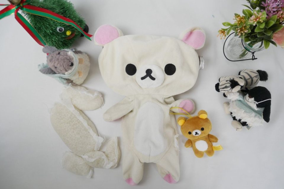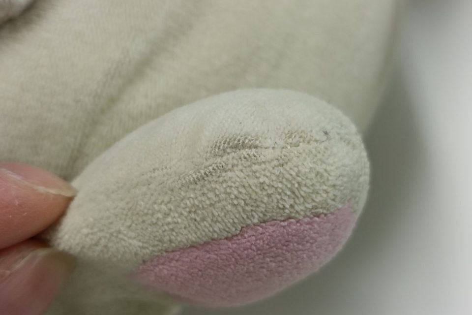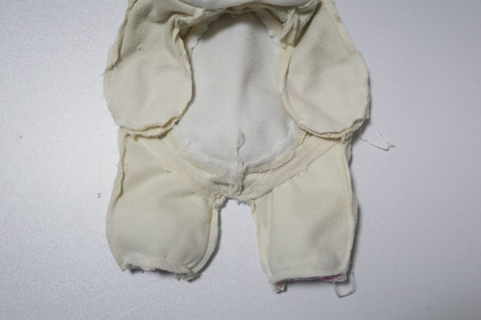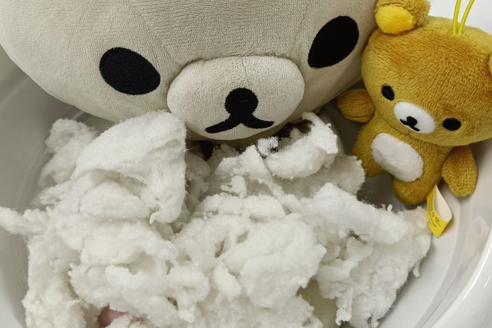 中綿再利用をご希望でしたが、劣化状態的に全ての再利用は難しいため、一部再利用(一握り程度の量)とさせていただきます♪